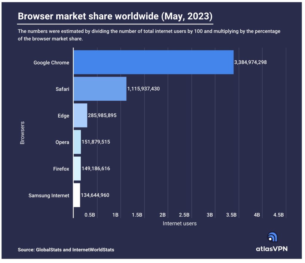 Google Chrome has nearly 3.4 billion users and is the most popular browser. Apple’s Safari browser reached over 1 billion users last year and this year continued to grow to 1.1 billion users. AtlasVPN says this growth can be attributed to several factors, including “Apple’s strong brand loyalty, seamless integration across Apple devices, and the browser’s reputation for privacy and security.”