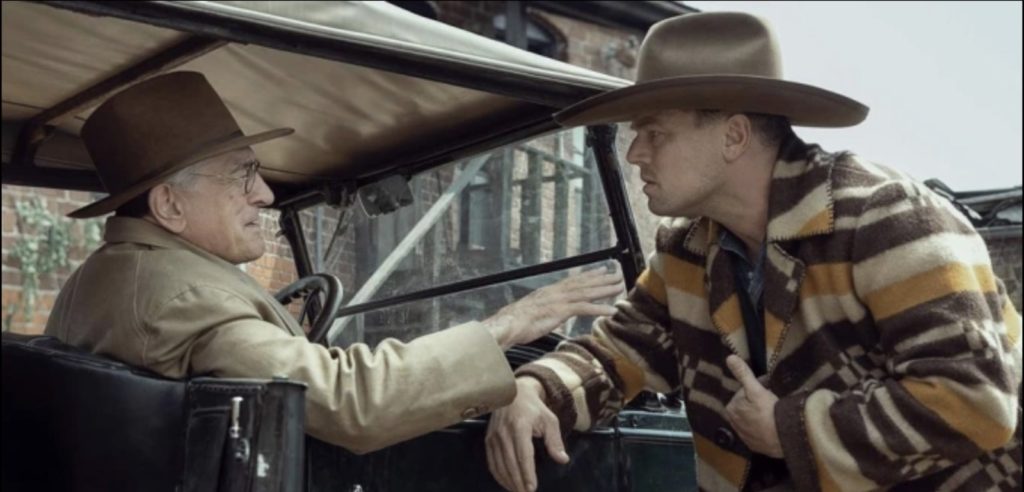 Here’s how the film is described: At the turn of the 20th century, oil brought a fortune to the Osage Nation, who became some of the richest people in the world overnight. The wealth of these Native Americans immediately attracted white interlopers, who manipulated, extorted and stole as much Osage money as they could before resorting to murder. Based on a true story and told through the improbable romance of Ernest Burkhart (Leonardo DiCaprio) and Mollie Kyle (Lily Gladstone), “Killers of the Flower Moon” is an epic western crime saga, where real love crosses paths with unspeakable betrayal.