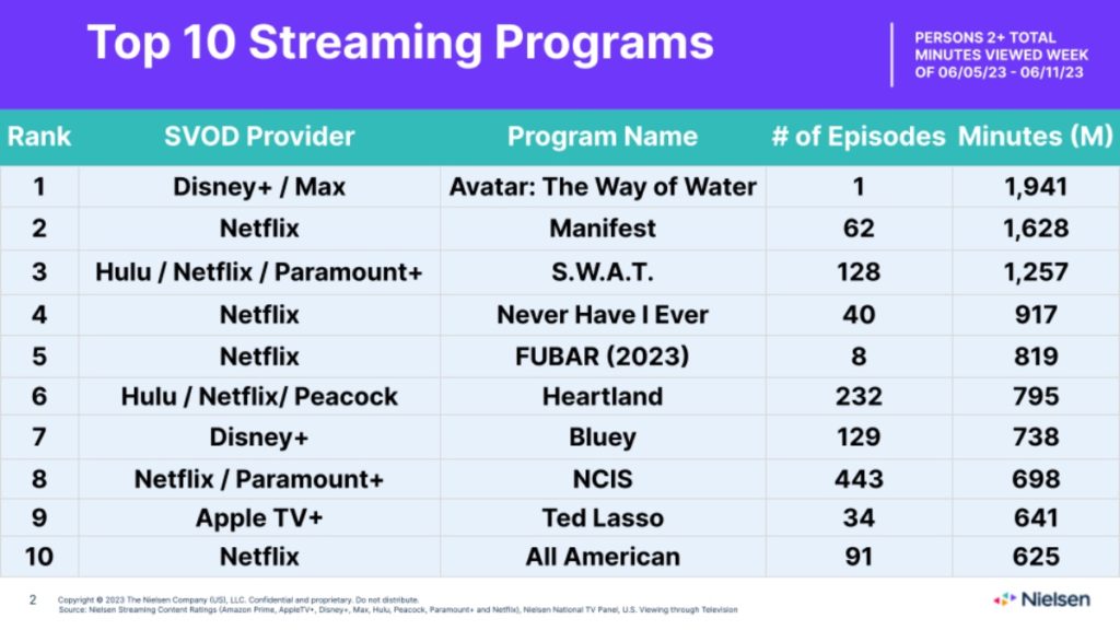 It drew another 641 million viewing minutes this week and took No. 9 overall according to Nielsen streaming rankings for the week of June 5 to June 11, reports Deadline. Ted Lasso star Jason Sudeikis also made it onto the movies list with We’re The Millers, which Netflix began carrying on June 1. Viewing for the 2013 comedy film jumped 30% this week to 332M minutes, making it No. 3 among films.