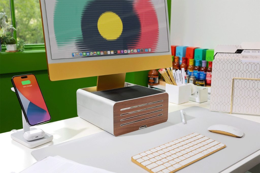 Twelve South’s US$149.99 HiRise Pro — an elevator/gear garage for Studio Displays and iMacs — is now available in a silver finish.