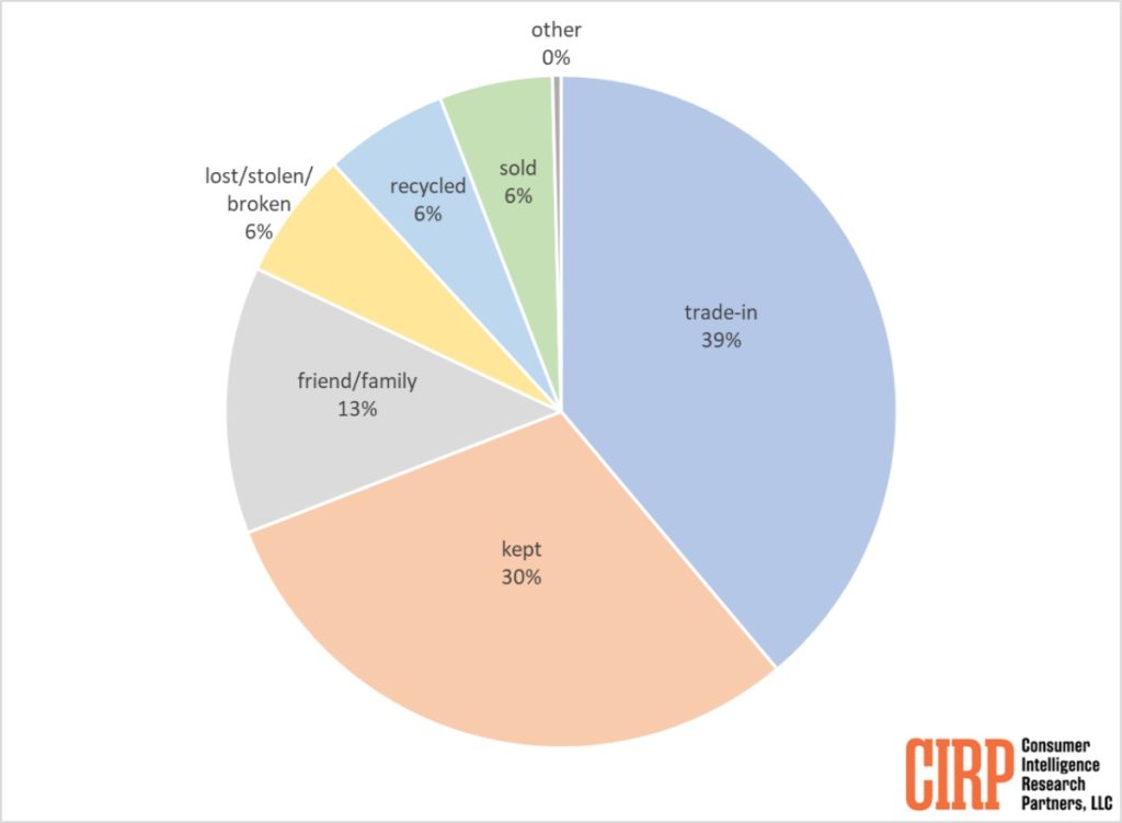 When a new iPhone buyer retires an iPhone, they have several options. In recent years, most (39%) have traded them in to help defray the cost of the replacement phone or qualify for a generous promotion, according to new data from Consumer Intelligence Research Partners (CIRP).