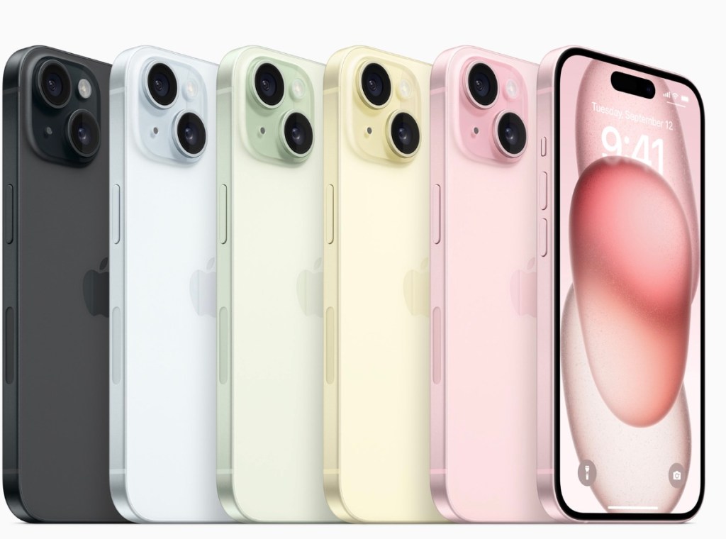 - The iPhone 15 and iPhone 15 Plus will be available in pink, yellow, green, blue, and black in 128GB, 256GB, and 512GB storage capacities, starting at US$799 or $33.29 per month, and $899 or $37.45 per month, respectively.