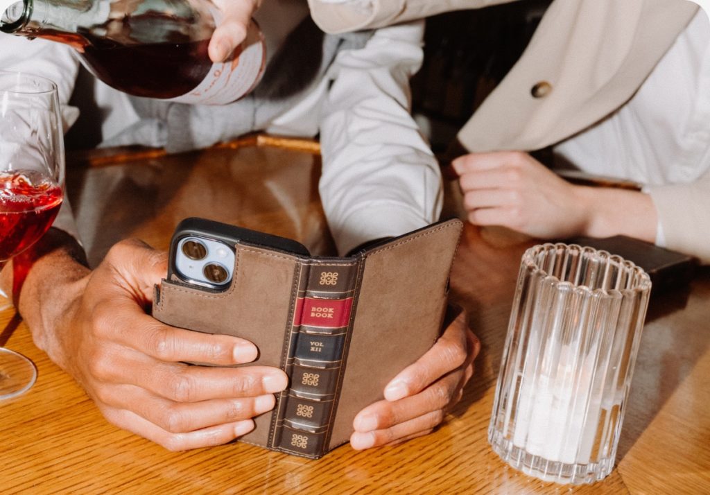 The BookBook is an all-in-one wallet case that looks like a, well, a book. It’s designed to protect your iPhone on all six sides. It’s made of full-grain leather and has a removable MagSafe shell.