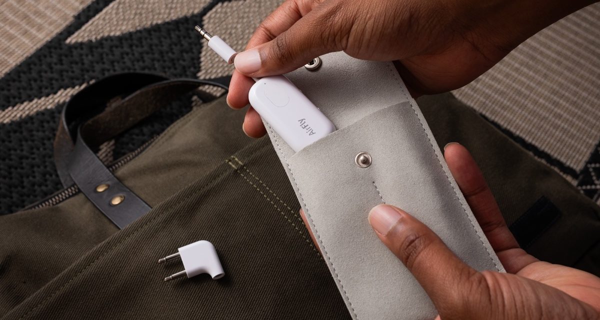 The AirFly Pro connects your favorite wireless headphones to the in-flight entertainment system so you can enjoy wireless audio anywhere. And now, with our beautifully designed international airline adapter, you’ll have the perfect connection on even more flights! The new Deluxe Edition — available in white or black — includes AirFly Pro & the Deluxe International Airline Adapter, which all stows into a premium vegan suede Travel Pouch.