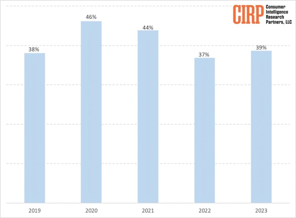 It’s been this way for quite some time, too. Data for the most recent annual period (ending with the September 2023 quarter) indicates iOS captured 39% of smartphone sales, notes CIRP.