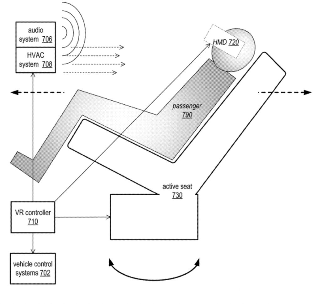 Active vehicle systems and/or vehicle control systems may be integrated with the VR system to provide physical effects with the virtual experiences. Apple says ghe virtual environments may be altered to accommodate a passenger upon determining that the passenger is prone to or is exhibiting signs of motion sickness.