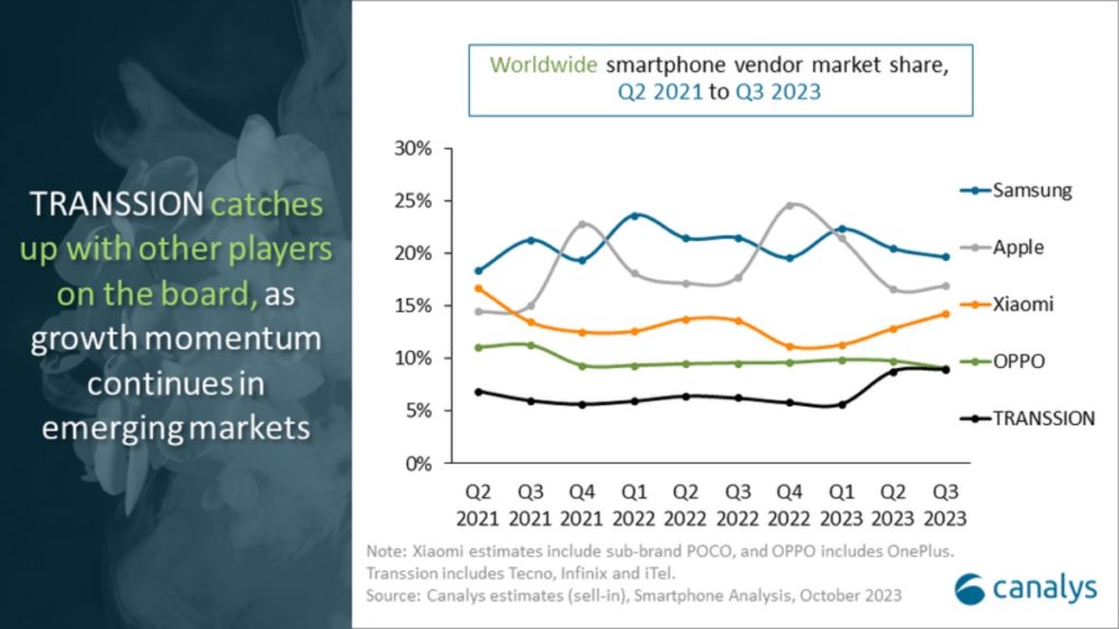 Canalys’ latest research reveals that the global smartphone market fell slightly by 1% to 293.4 million units in quarter three (Q3) of 2023 with vendors pushing new models following a healthy inventory level in Q2.