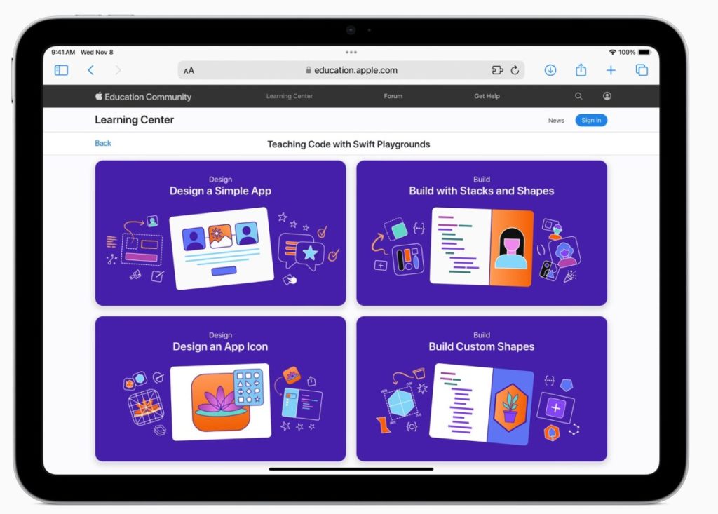 New resources for teaching coding and app development with Swift Playgrounds, including four new Everyone Can Code Projects, are now available in the Apple Education Community, where educators can find resources for any skill level, connect with peers, and more. Swift Playgrounds 4.4 is available now, and includes support for Swift 5.9, and SDKs for iPadOS 17 and macOS Sonoma.