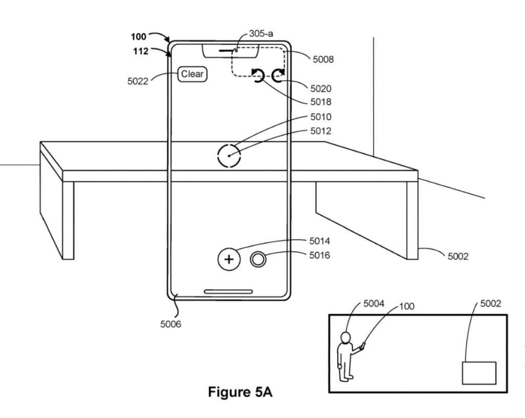 Here’s Apple’s abstract of the patent: “An electronic device displays a representation of a field of view of a camera that includes a view of a three-dimensional space. The representation of the field of view is updated over time based on changes to current visual data detected by at least one of the one or more cameras. Movement of the electronic device moves the field of view of the camera in a first direction.