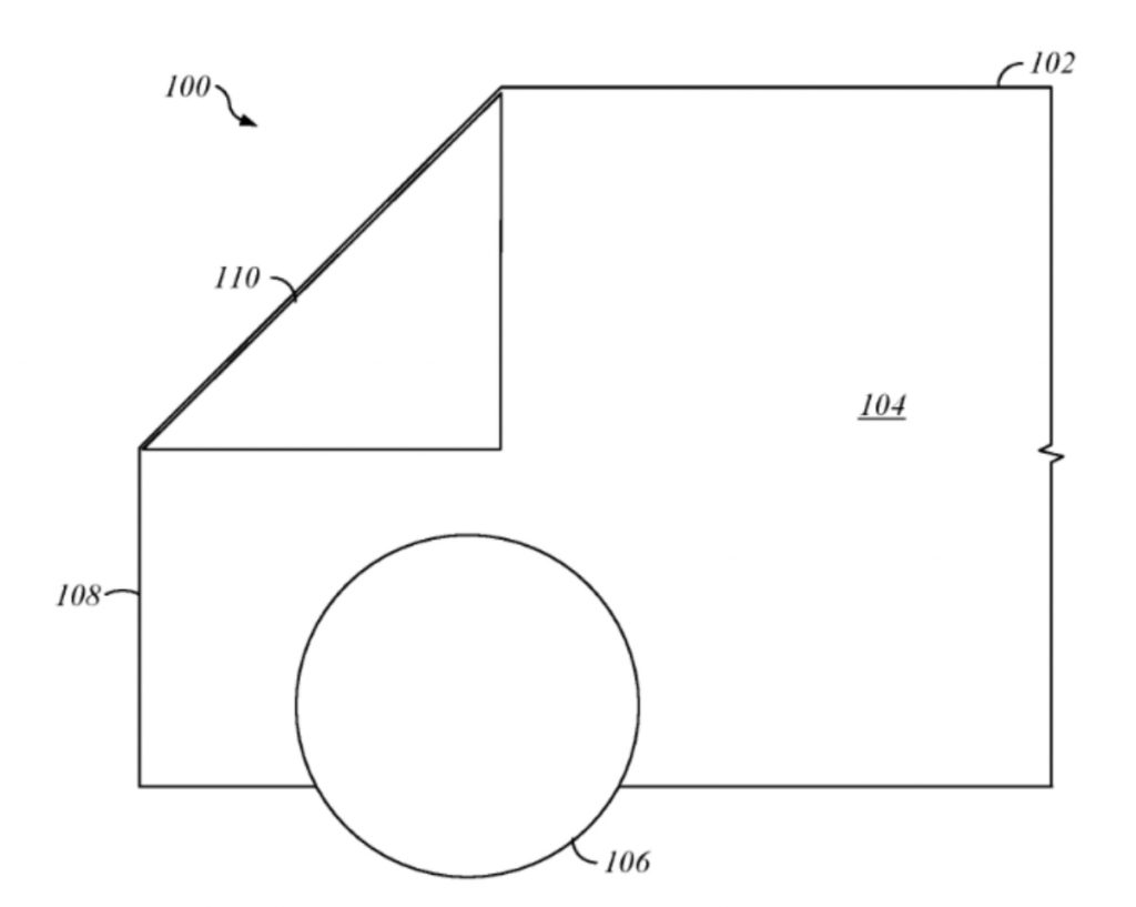 Here’s Apple’s abstract of the patent: “An apparatus for resisting entry of objects through a panel. The apparatus includes a weakened portion that extends laterally across a width dimension of the panel. The apparatus includes a stop structure spaced from the weakened portion that extends laterally across the width dimension of the panel to limit deformation. A bottom edge of the panel is configured to rotate about an axis extending along the weakened portion to abut the stop structure.”