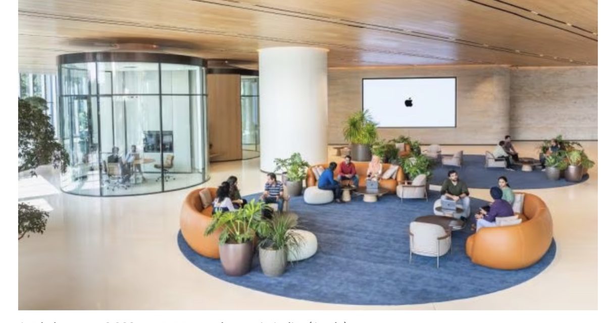 The Indian Express says the 15-floor office is designed to house up to 1,2000 employees and features a dedicated lab space apart from areas for collaboration and wellness and Caffe Macs, a food and beverage service for Apple employees. The interior uses locally sourced materials, including stone, wood and fabric, in the walls and flooring, according to Apple. The office also makes use of many local plants.