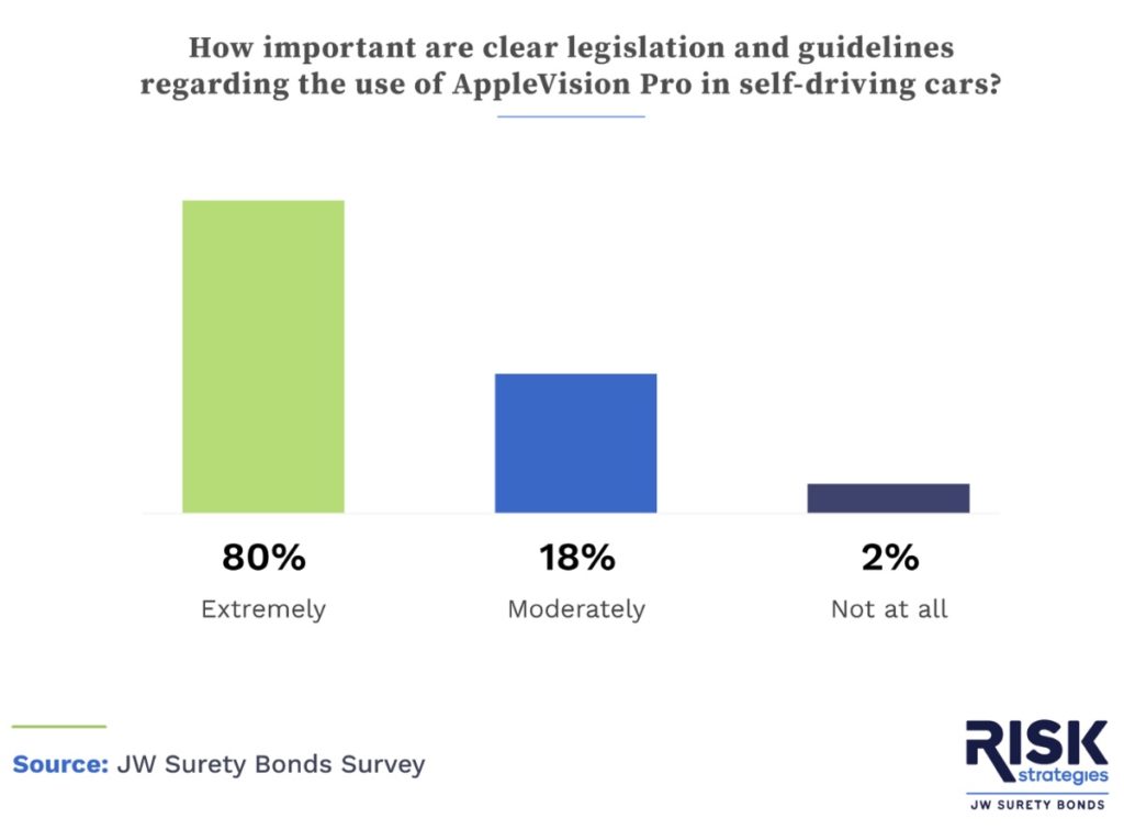 ° Eighty percent of Americans think it’s extremely important to have clear legislation and guidelines regarding the use of Apple Vision Pro in self-driving cars.