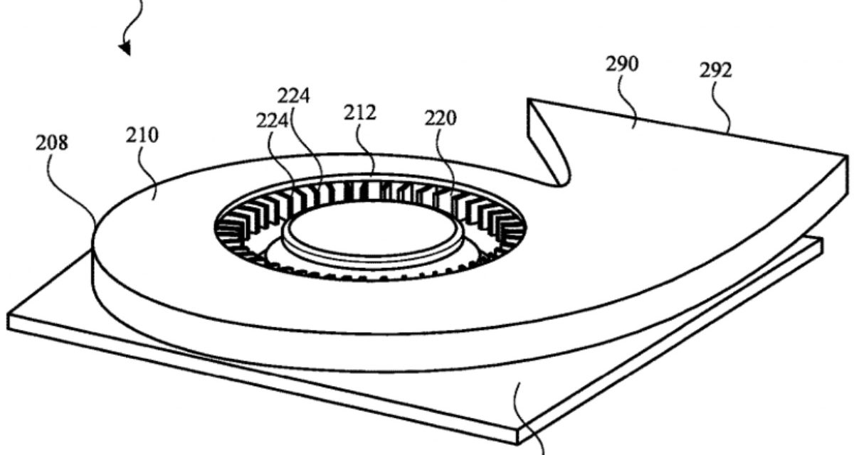 Here’s Apple’s abstract of the patent filing: “A head-mountable device can include a fan that effectively manages heat while also mitigating the intrusion of particles and other debris. Fans can include a protrusion that creates a tortuous pathway to direct incoming particles away from sensitive regions.