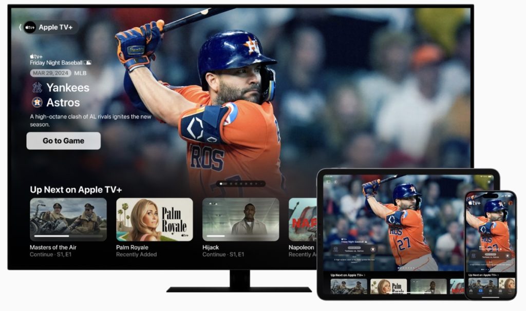 Apple and Major League Baseball (MLB) have announced that “Friday Night Baseball,” a weekly doubleheader, will be available to Apple TV+ subscribers on Fridays throughout the 2024 regular season.