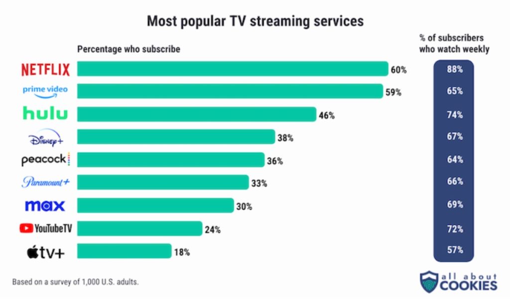 - 60% of people have a Netflix account and more than 4-in-5 tune in weekly