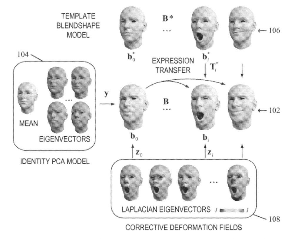 Here’s Apple’s abstract of the patent: “Embodiments relate to a method for real-time facial animation, and a processing device for real-time facial animation. The method includes providing a dynamic expression model, receiving tracking data corresponding to a facial expression of a user, estimating tracking parameters based on the dynamic expression model and the tracking data, and refining the dynamic expression model based on the tracking data and estimated tracking parameters. The method may further include generating a graphical representation corresponding to the facial expression of the user based on the tracking parameters. Embodiments pertain to a real-time facial animation system.”