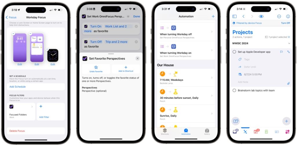 With OmniFocus 4.3, you can now set device Focus Filters to automatically filter out any OmniFocus content which is not relevant to the current Focus. Also included in OmniFocus 4.3 is a new Favorite Perspective shortcut. With this shortcut, you can change your favorite perspectives by using a Siri command. Or you can take your device Focus customization a step further, by automating which set of perspectives gets displayed in the OmniFocus Perspectives Bar on your device when a device Focus is enabled or disabled.