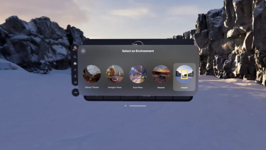 The new National Geographic environment will transport Disney+ subscribers on Apple Vision Pro to the rocky terrain of Thingvellir National Park on a snowy winter day, allowing them to explore their surroundings via interactive elements and sounds that make the space come to life. This UNESCO world heritage site, captured by a team of National Geographic photographers, serves as the backdrop for viewers watching Disney+ content beneath a spectacular nighttime aurora, Miller says.