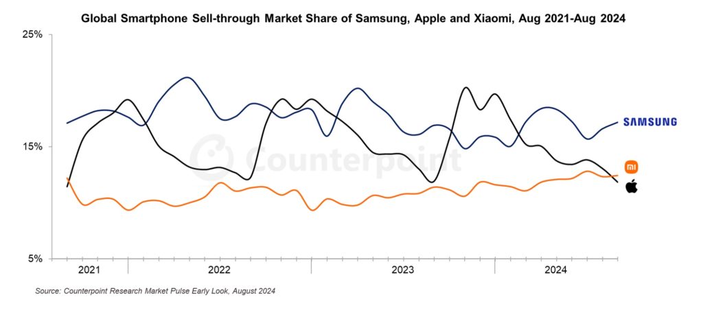 However, Xiaomi isn’t likely to keep second place for long. With the new generation of iPhones usually launching in September, August tends to be Apple’s weakest month in a given calendar year. The launch of the iPhone 16 series is likely to propel Apple to recapture the #2 spot, or even the #1 spot, in the coming months as sales ramp up, notes Counterpoint.