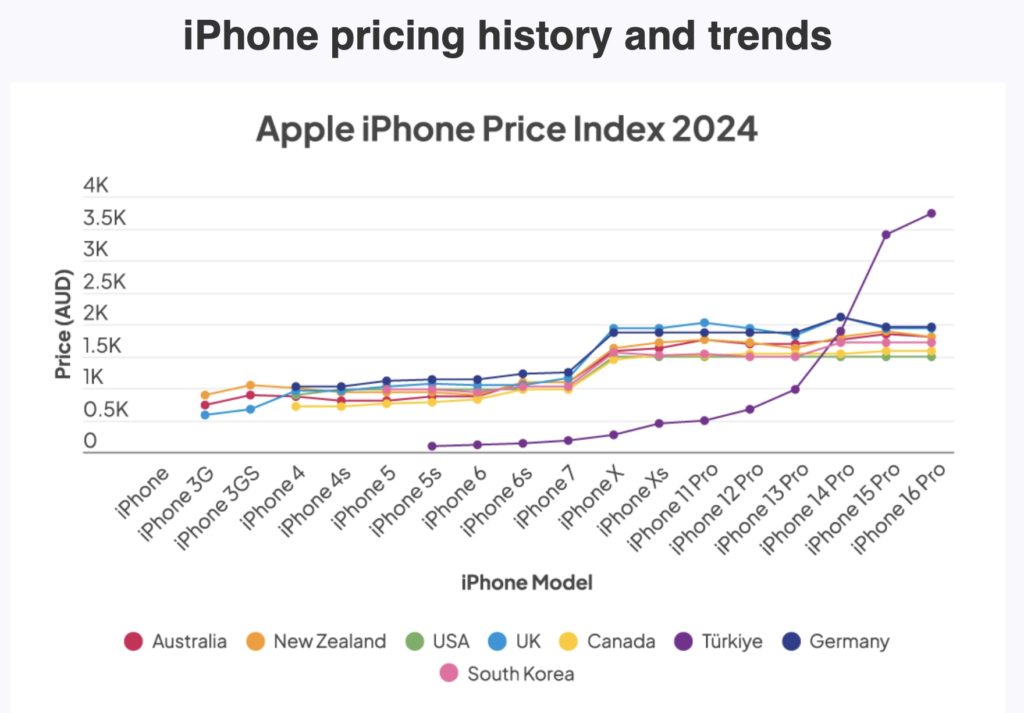 Amid the launch of the Apple iPhone 16 and 16 Pro, a new Compare the Market Australia study has found Türkiye, Australia, and New Zealand have seen the biggest iPhone price increases over the years.