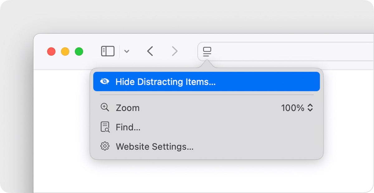 According to Apple, if a webpage regularly shows one or more items that you find distracting, you can use the Distraction Control feature to hide those items until you choose to see them again.