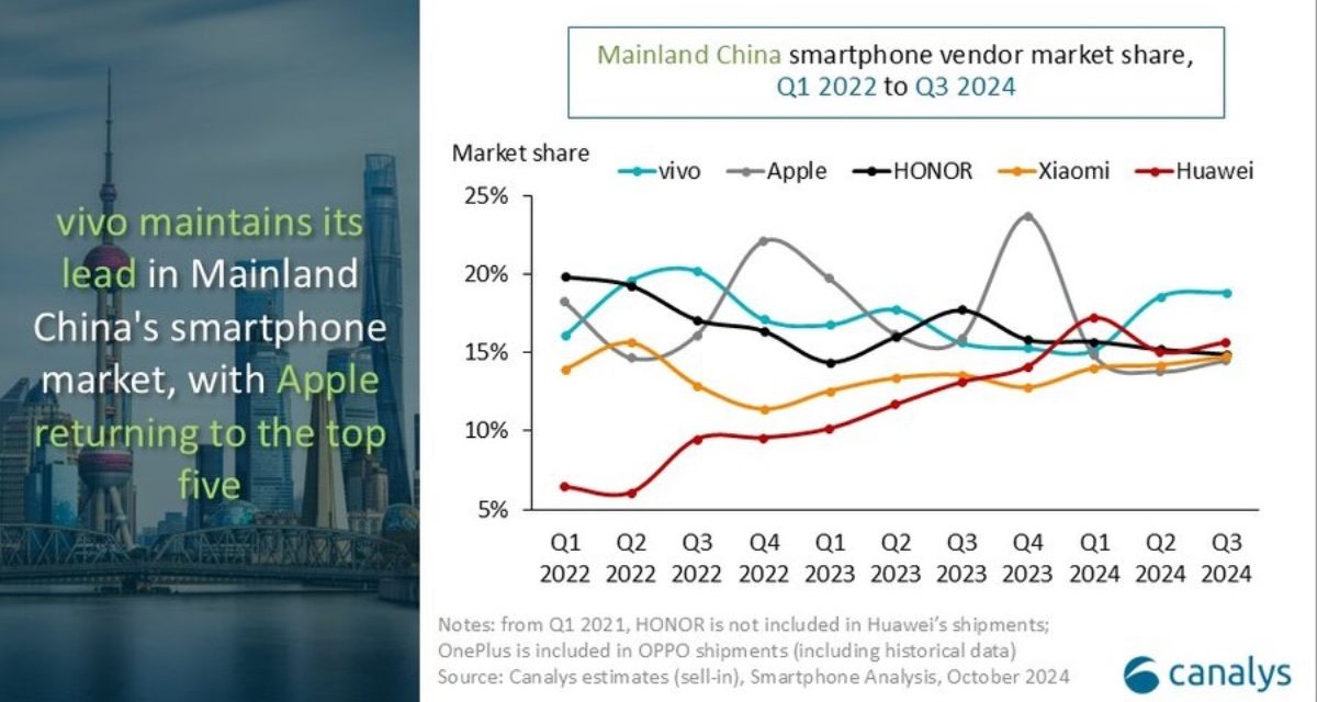 According to Canalys research, Mainland China’s smartphone market continued to rebound in quarter three (Q3) 2024, driven by the summer and back-to-school shopping seasons.