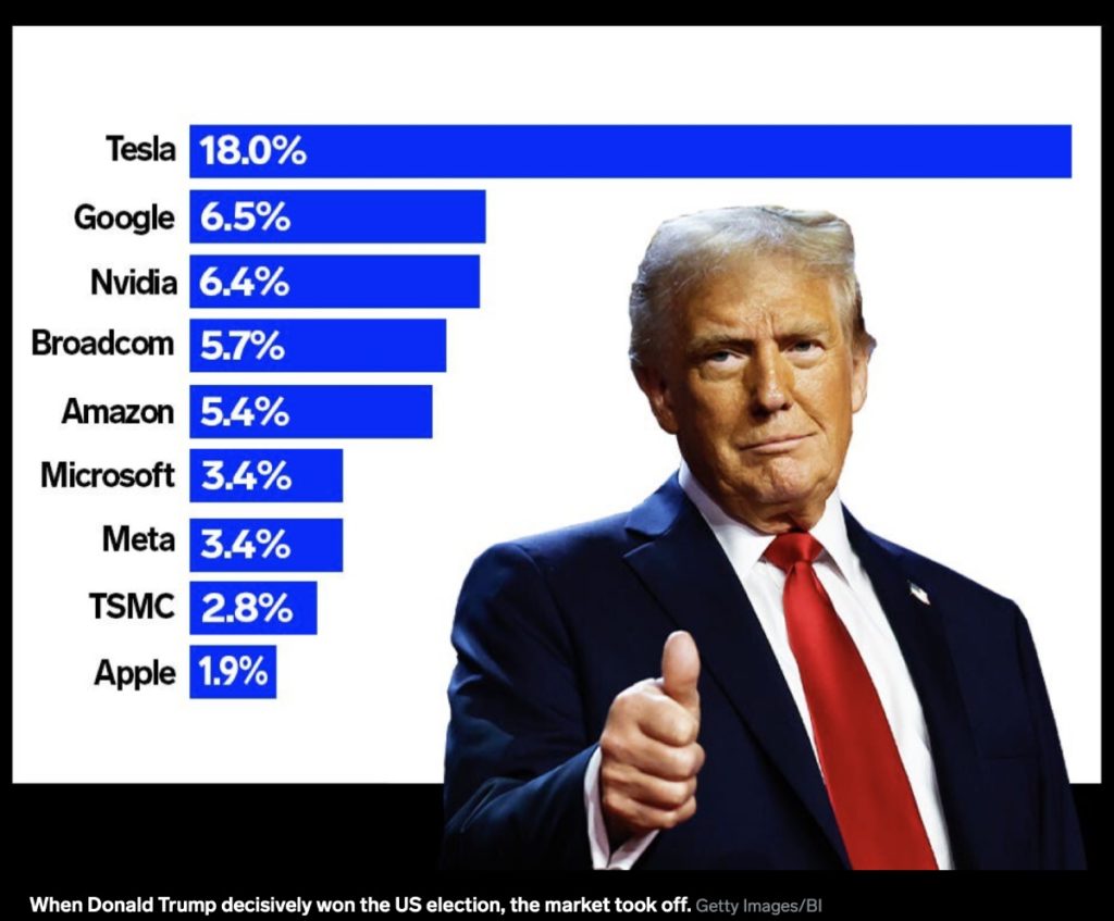 Tech stocks rose the day after Donald Trump’s election win, though Apple could face challenges if the President goes through with his proposed tariffs on China, reports Business Insider (a subscription is required to read the article).