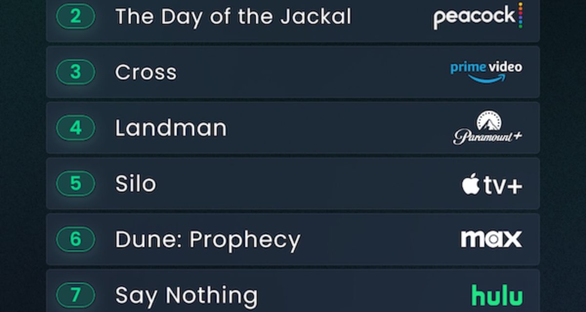 Apple TV+’s “Silo” ranks fifth in this week’s list of streaming movies and TV shows as ranked by Reelgood, a streaming services guide.