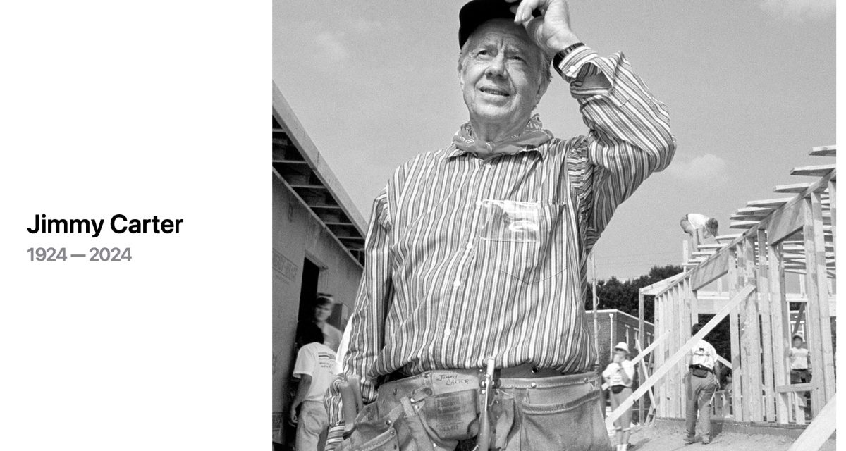 Apple has updated its homepage to honor former U.S. President Jimmy Carter, who died Sunday at the age of 100.