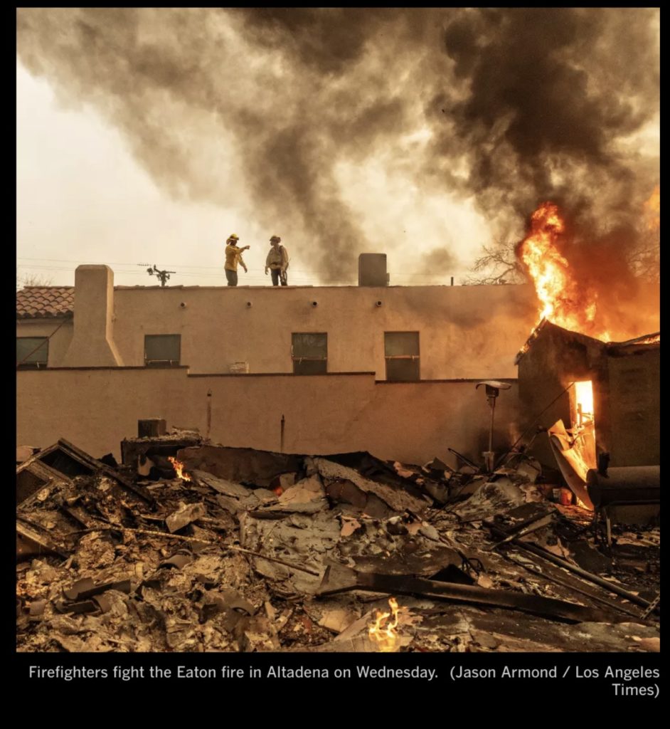 Five people have died, more than 2,000 structures have burned and at least 130,000 residents are under evacuation orders because of the wildfires burning across Los Angeles County, according to the LATimes.