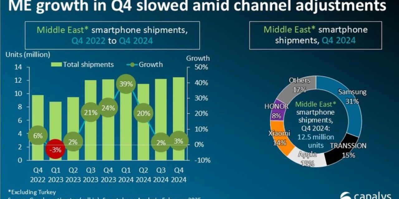 Canalys, now part of Omdia, reports that the Middle East (excluding Turkey) smartphone market surged in 2024, recording a robust 14% annual growth, nearly double the global recovery rate of 7%.
