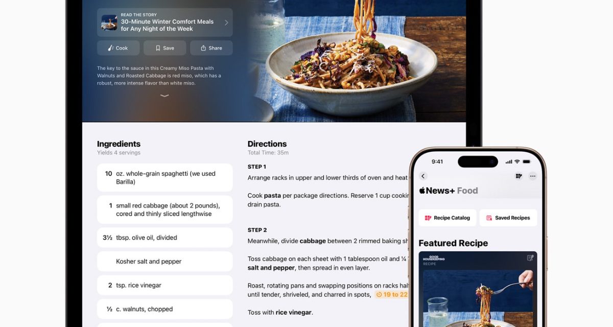 Apple has announced that, coming with iOS 18.4 and iPadOS 18.4 in April, Apple News+ subscribers will have access to Apple News+ Food.