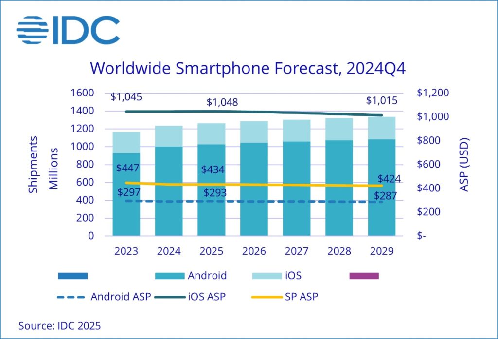 Worldwide smartphone shipments are forecast to grow 2.3% year-over-year in 2025 to 1.26 billion units, according to the International Data Corporation (IDC) Worldwide Quarterly Mobile Phone Tracker.