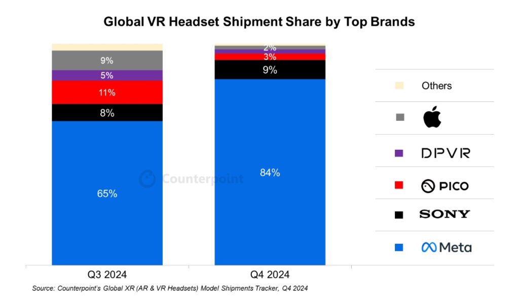 However, it’s not just Apple. Global virtual reality (VR) headset shipments fell 12% year-over-year in 2024, the market’s third consecutive year of declines, according to the latest update from Counterpoint’s Global XR (AR/VR) Headset Model Tracker. In the fourth quarter, the shipments fell 5% year-over-year.