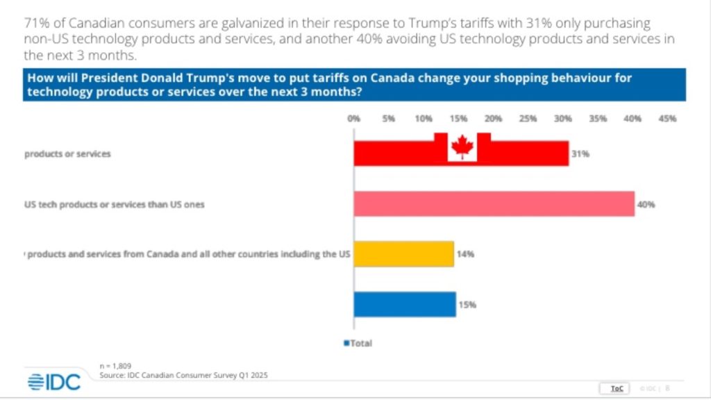This isn’t good news for Apple or any tech firm: the IDC research group has released a new survey that shows that Canadian consumers are avoiding US tech amid tariff tensions.