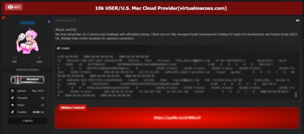 In a recent discovery, SafetyDetectives’ Cybersecurity Team stumbled upon a web forum post where a threat actor publicized a database that allegedly belongs to VirtualMacOSX.com. The data purportedly belongs to 10,000 of its customers.