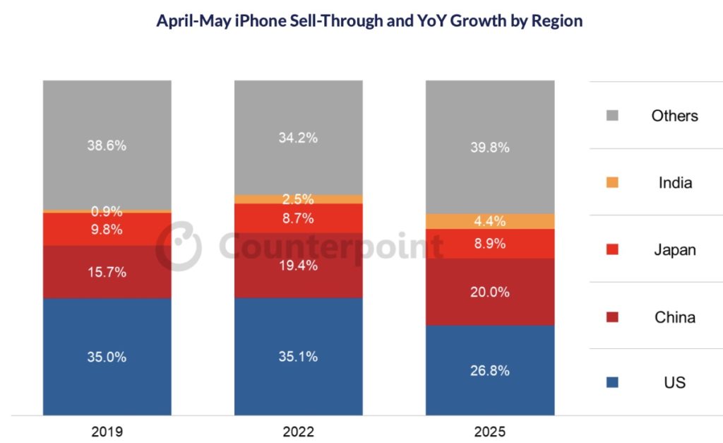 This is Apple’s highest market share for these two months combined post pandemic. Regionally, Apple’s largest two markets, USA and China were the key sales drivers during the period.
