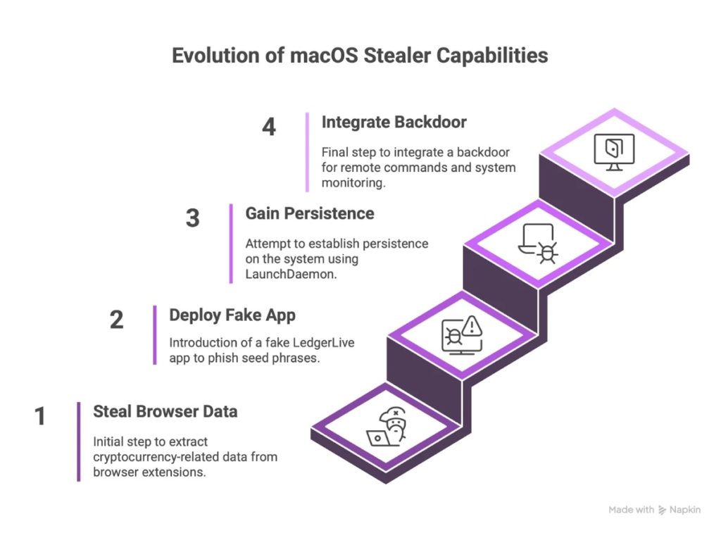 The upgrade to AMOS represents a significant escalation in both capability and intent, whether the changes were made by the original malware authors or by someone else modifying the code.