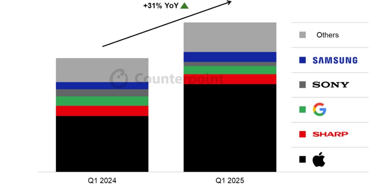 Japan’s smartphone sales saw a sharp year-over-year (YoY) surge of 31% in quarter one (Q1) of 2025, according to Counterpoint Research’s Japan Smartphone Sell-through Tracker .
