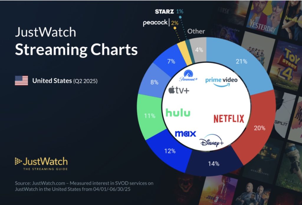 JustWatch, the largest streaming guide in the world, has released its latest quarterly update on SVOD market shares in the U.S. — and it’s been an interesting quarter.