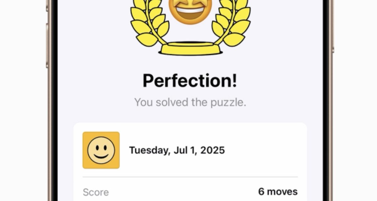 Emoji Game challenges players to use a selection of emoji — including Genmoji created using Apple Intelligence — to fill in the blanks of three short phrases using as few moves as possible. Each phrase is accompanied by a clue, which the user can choose to reveal, but that will count toward the player’s total number of moves.