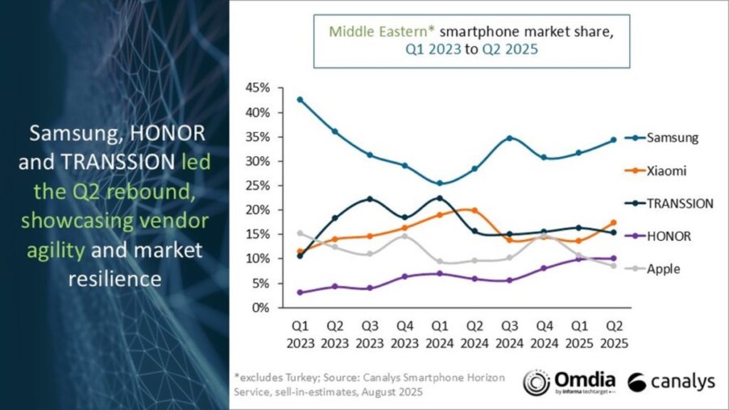 The latest research from Canalys reveals that the Middle East’s (excluding Turkey) smartphone market grew 15% to 13.2 million units in the second quarter of 2025, making it the strongest-growing region worldwide.
