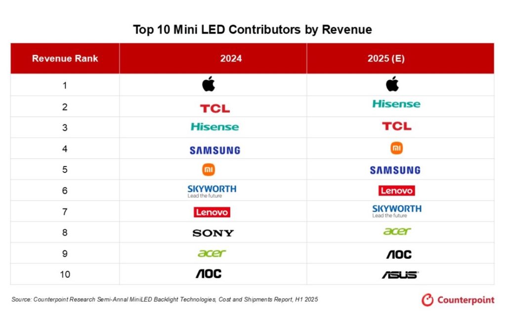 Total global MiniLED panel shipments rose 20% year-over-year in 2024, and Apple’s shipments rose 3.5%, according to new data from Counterpoint Research. The Mac maker retained its top position in the laptop market.