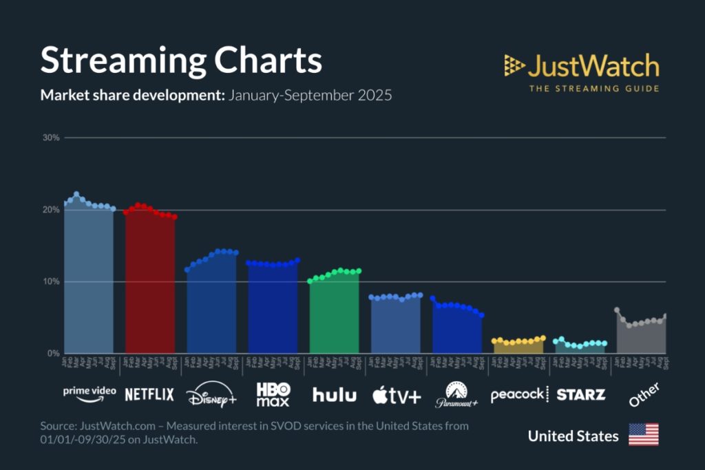 JustWatch, the largest streaming guide in the world, has released its “Q3 2025 U.S. Streaming Market Share Report,” analyzing activity from over 20 million monthly U.S. users.