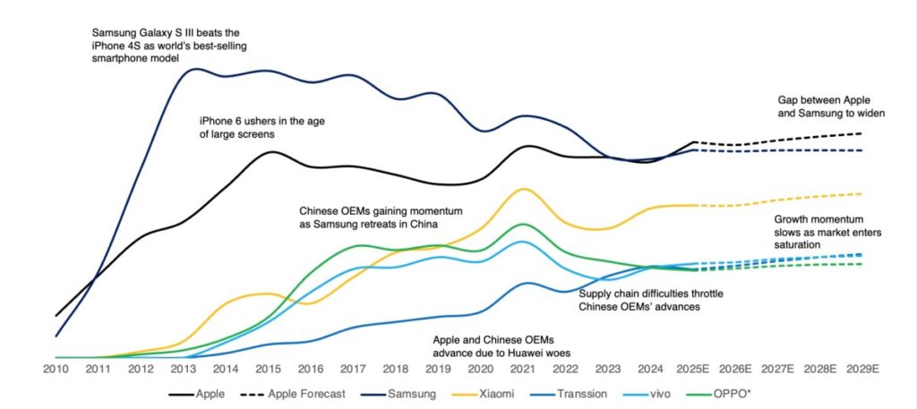 The iPhone maker is set to dethrone Samsung in shipments for the first time in 14 years and will maintain the top spot through 2029, according to the research group. With strong momentum building for the iPhone 17 series across key regions, iPhone shipments are predicted to grow 10% year-over-year (YoY) in 2025.