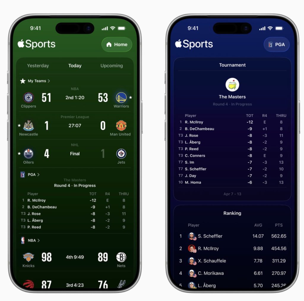 Apple Sports — the free app for iPhone that gives fans access to real-time scores, stats, and more — has added golf to its growing list of supported sports.