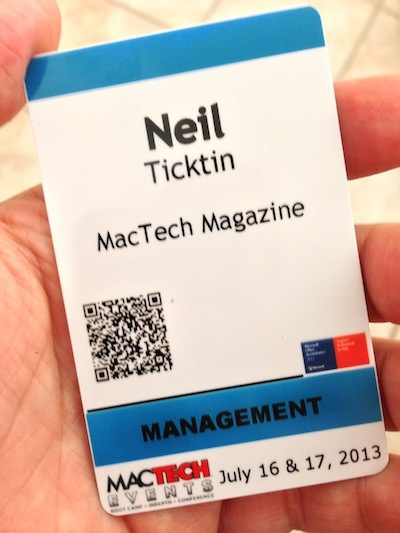 Sponsors have been asking for a way to gather information from attendees especially if the attendee has not brought business cards. With that in mind, we’ve included a QR Code on the badges. With this solution, you can use your smart phone to scan a basic QR Code and get a “meCard” that, if availalble, will have the person’s name, company name, email, and possibly web site. To use this, you need to (in advance), download a QR Code reader to your smart phone. We suggest something like QRReader by TapMedia which allows you to quickly scan, keep a history, and later export the contacts to a csv file and mail it to yourself. While this QR code approach has been working well at events, it is an added courtesy item. In other words, no guarantees, and it may or may not be a part of future MacTech events. This is an “as is” vendor benefit.